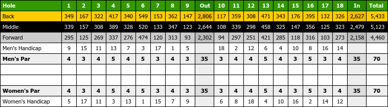 You can view a more detailed scorecard for individual users from the scorecard link below their summary. Click a feature under Yardage Book to see where it is on the hole. Separate pricing available for Food Beverage.